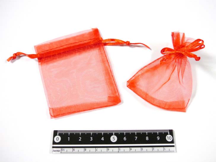 【ジュエリー袋 オーガンジー四角 約90枚】約9x6.3cm レッド ケース ポーチ 巾着袋 アクセサリー入れ ラッピング用品 ギフト包装資材